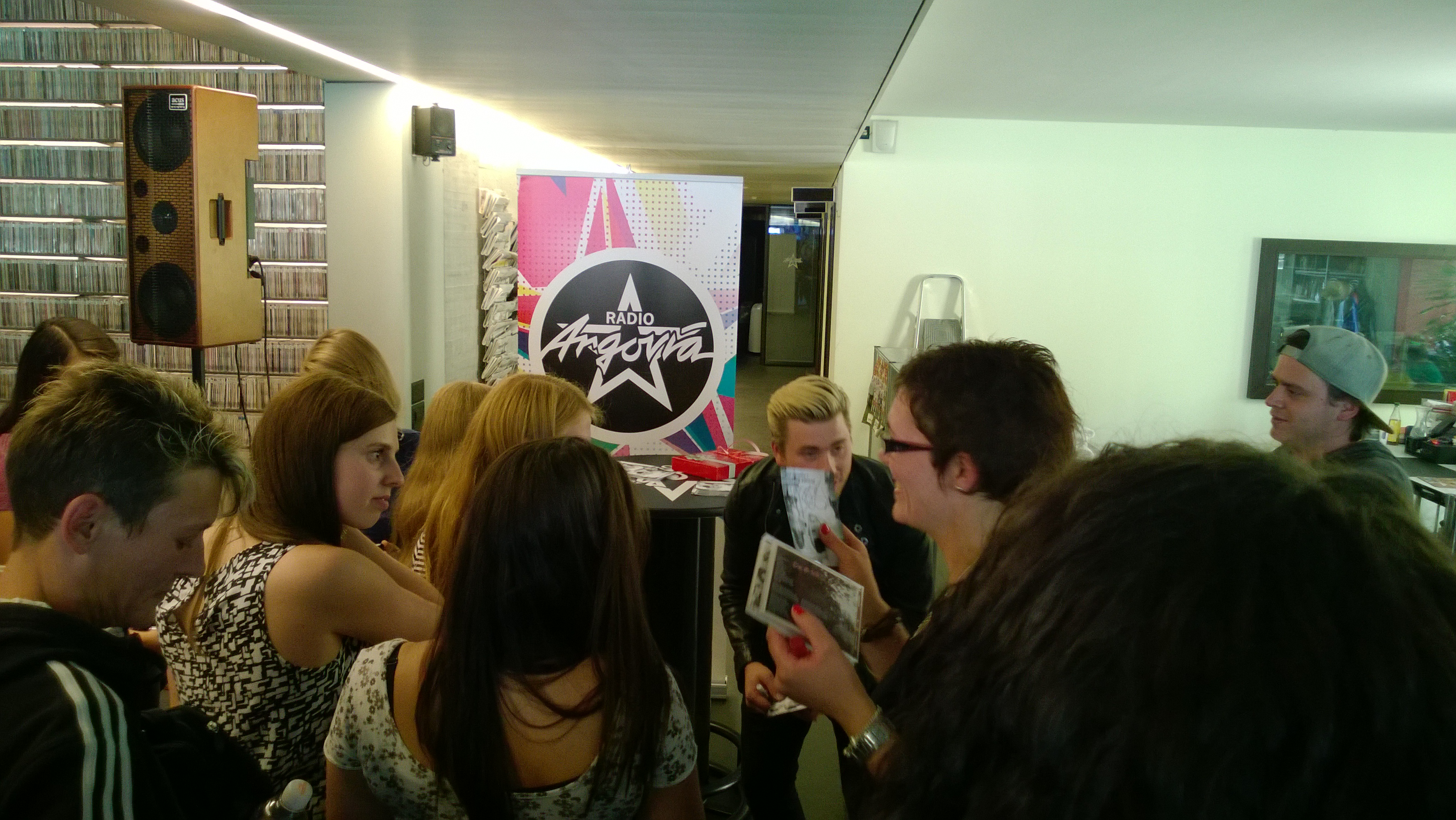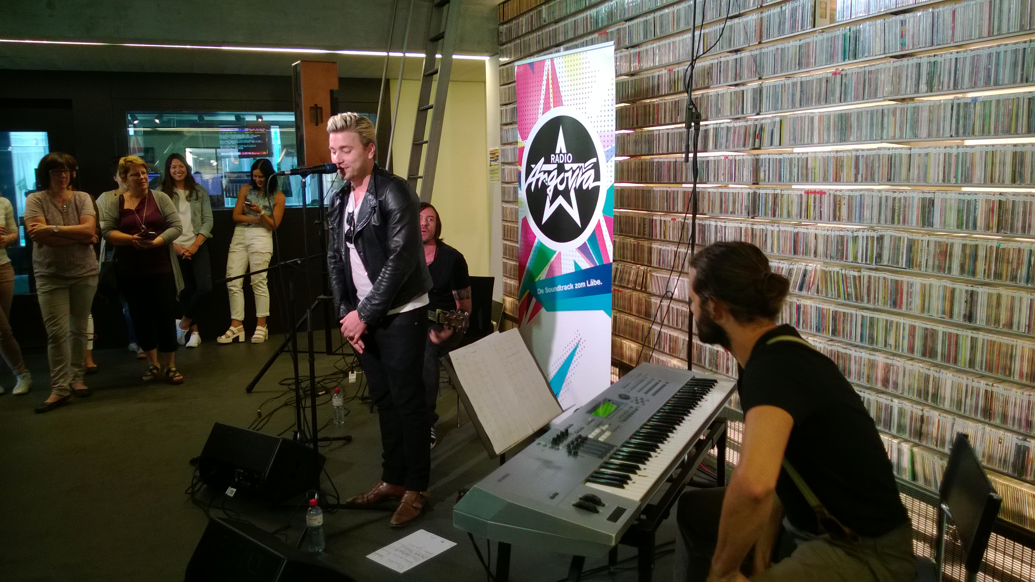 45 Argovia-Hörer/innen mit Begleitung hatten die exklusive Möglichkeit einige neue Songs das erste Mal live zu hören… Baschi wurde begleitet von Phil an der Gitarre und Christian „Chrigel“ Riesen am Piano. Dem Publikum schien das Gehörte zu gefallen: Alle machten gut mit, was auch Baschi seine Nervosität schnell vergessen liess.