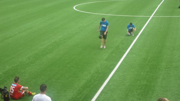Gestartet wurde mit dem Spiel Schweiz-Italien mit dem besseren Ende fürs Schweizer SRF3-Team. Gespielt wurden jeweils 2x 15 Minuten auf einem etwas kleineren Feld. Spiel 2 war Deutschland-Italien, welches Italien gewann. Spiel 3 Deutschland-Schweiz konnten Baschi & Co wieder knapp für sich entscheiden. In den Pausen zwischen den Spielen gabs z.B. eine Freestyle-Fussballshow wo Baschi aufmerksam zusah, vielleicht wollte er noch etwas lernen… zu meinen weiteren FOTOS Ansonsten hatte Baschi einige gute Aktionen auf dem Feld, aber ausser beim finalen Penaltyschiessen blieb er torlos. Zeitweise standen sogar 2 Baschis oder Vujos auf dem Platz dank Fabian Unteregger, der diese gekonnt imitierte und so das Publikum zum schmunzeln brachte. Vom echten Baschi gabs hierfür Applaus 🙂 . Auf dem Feld wurde er oft zusammen mit Berufskollege Noah Veraguth gesichtet. Apropos Musik: bei der Sambashow vor dem Final zeigte Baschi seine Musiker-Leidenschaft beim Sambatanzen 🙂