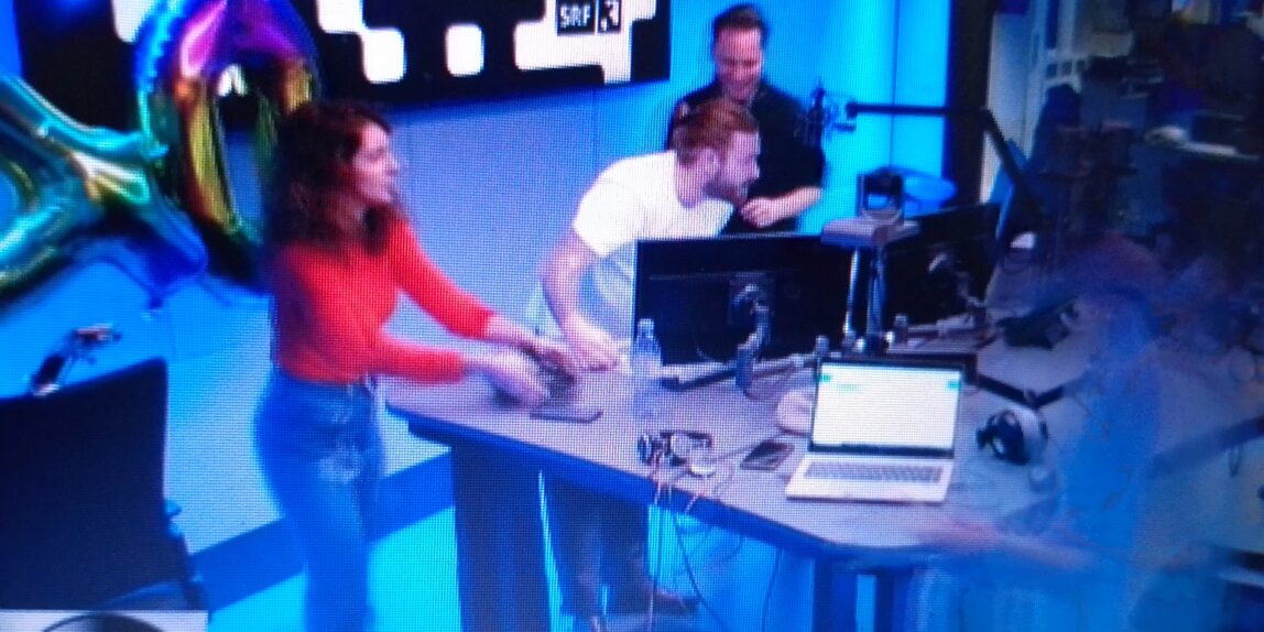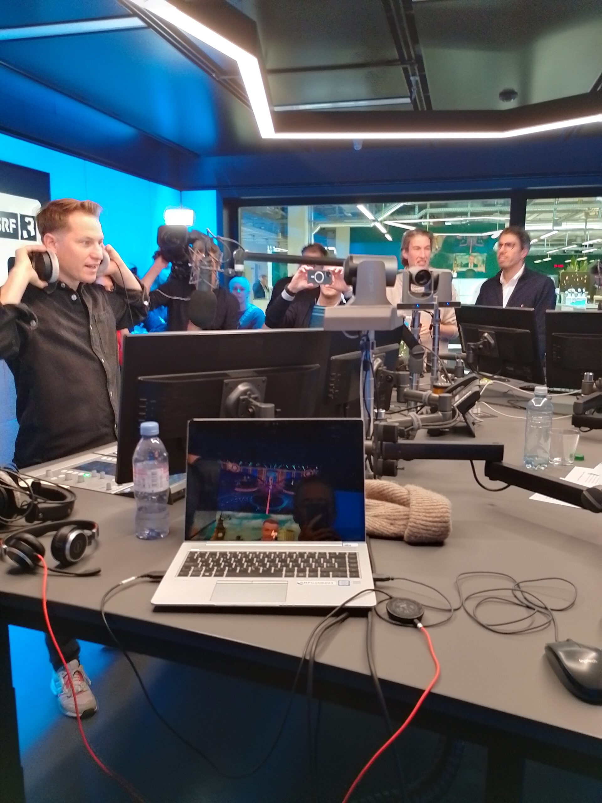 Im Rahmen der TV-Geburtstagsshow „40 Jahre SRF3“ haben die beiden Kumpels die Gelegenheit erhalten, sich 3 Stunden als Radiomoderatoren auszutoben. Sie waren ab 9 Uhr live auf Sendung unter fachkundigem Coaching von Celine Werdelis.