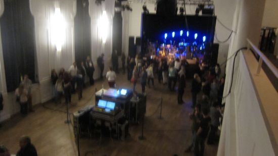 Für mich galt heute, der frühe Vogel fängt den Wurm. Als ich dort eintraf, konnte ich durch den Bühneneingang in den noch leeren Saal switchen und grad noch die letzten Züge vom Soundcheck mitbekommen. Ebenso konnte ich die Aussicht von der Bühne persönlich testen. Mein Fazit vom Künstler-Alltag lautet, dass es nach dem Soundcheck mit viel viel Wartezeit verbunden ist. Diese habe ich mit einem Teil der Crew genutzt für einen Spaziergang zum Hotel-Check-In und auf dem Rückweg reichte es noch für einen ausgedehnteren Zwischen-stopp am Weihnachtsmarkt. Nach einer Stärkung mit der Crew am Buffet hiess es schon Position beziehen für THE BULLET, die sich wiederum steigerten im Blick auf Spontanität und Stimmungsmache. Auch wenn kein See da war haben wir trotzdem Party gemacht 🙂 …bin mal gespannt aufs grosse Finale morgen.