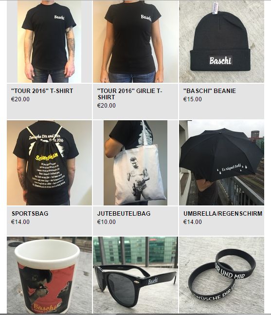 Dankbar dürfen wir verkünden, dass ihr mit dem exklusiven Discount-Code: „BASCHIMANIA“ beim Check-Out 50% auf den gesamten Einkauf erhaltet! (Bild: mercharsenal-europe.com) Also jetzt zuschlagen und für jede Wetterlage bzw. jedes Konzert passend ausgerüstet sein… „Es hät solang’s hät!“