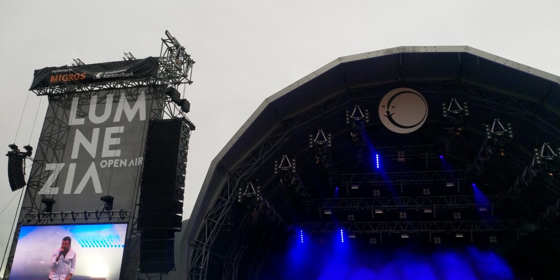 Viel gutes gehört, aber noch nie dort gespielt, so erging es Baschi bisher und jetzt durfte er endlich. Allerdings wurde ihm vorgeworfen er habe den Regen mitgebracht. Zum Glück steht neben der Bühne gleich eine Kirche, dass er kurz einen Deal mit Gott oder Petrus machen konnte. Und es hörte tatsächlich auf zu Regnen während seinem Auftritt! In trockenem Zustand zählt Lumnezia wirklich zu einem der schönstgelegenen schweizweit! Und drumherum Top organisiert mit Shuttlebussen etc. Viele andere Festivals würden sich wohl wünschen soviel Platz für Parking und Camping zu haben.