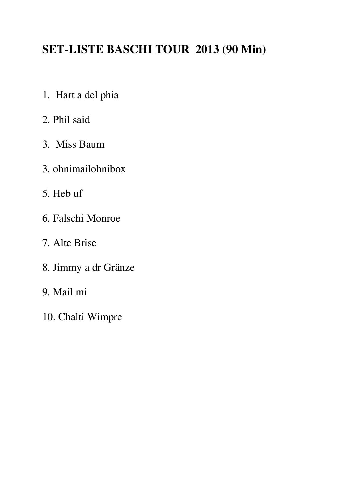 SET-LISTE Hier ein exklusiver Blick auf die (von mir gestaltete) Set-Liste…Upps da ist wohl einiges durcheinander geraten! Bin mal gespannt, ob sie es rechtzeitig schaffen alles wieder auseinander zu nehmen 🙂 Wir werden es bald sehen und hören.