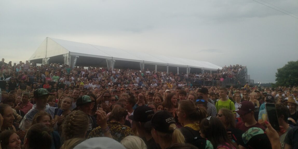 Der Regen hatte das Programm im Vorfeld durcheinander gebracht – so startete Baschi 45Min später als ursprünglich vorgesehen, blieb aber die ganze Show trocken. Die letzten 2 Konzerte haben dennoch unfreiwillige Spuren hinterlassen bei Baschi. Ihn nervte es wohl am meisten, dass seine Stimme ramponiert war und er nicht die gewohnte Show bieten konnte. Weil Etziken ein sicherer Wert ist für Baschi wurde ein Pakt geschmiedet wo jeder seine Aufgabe hatte: das verständnisvolle Publikum sollte so oft und laut mitsingen wie möglich, die Tourmanagerin servierte Ingwertee und gewisse Refrainparts wurden vom Schlagzeuger oder Keyboarder übernommen um Baschi zu entlasten. So hatte das ganze einen speziellen Charme und die Party konnte richtig steigen in der ausverkauften Arena.
